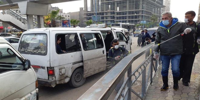 ضمن الإجراءات الاحترازية المتخذة للتصدي لفيروس كورونا بدأت محافظة دمشق أعمال التعقيم للمرافق العامة والأماكن التي تشهد ازدحاما بهدف الوقاية والحفاظ على السلامة العامة للمواطنين.