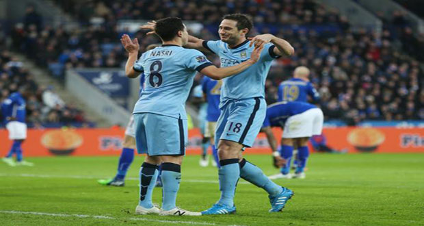 وبقي مانشستر سيتي حامل اللقب والذي يملك 36 نقطة لصيقا بالقمة بانتصاره الخامس على التوالي في الدوري على فريق الذيل ليستر سيتي بهدف نظيف أحرزه فرانك لامبارد في الدقيقة 40.