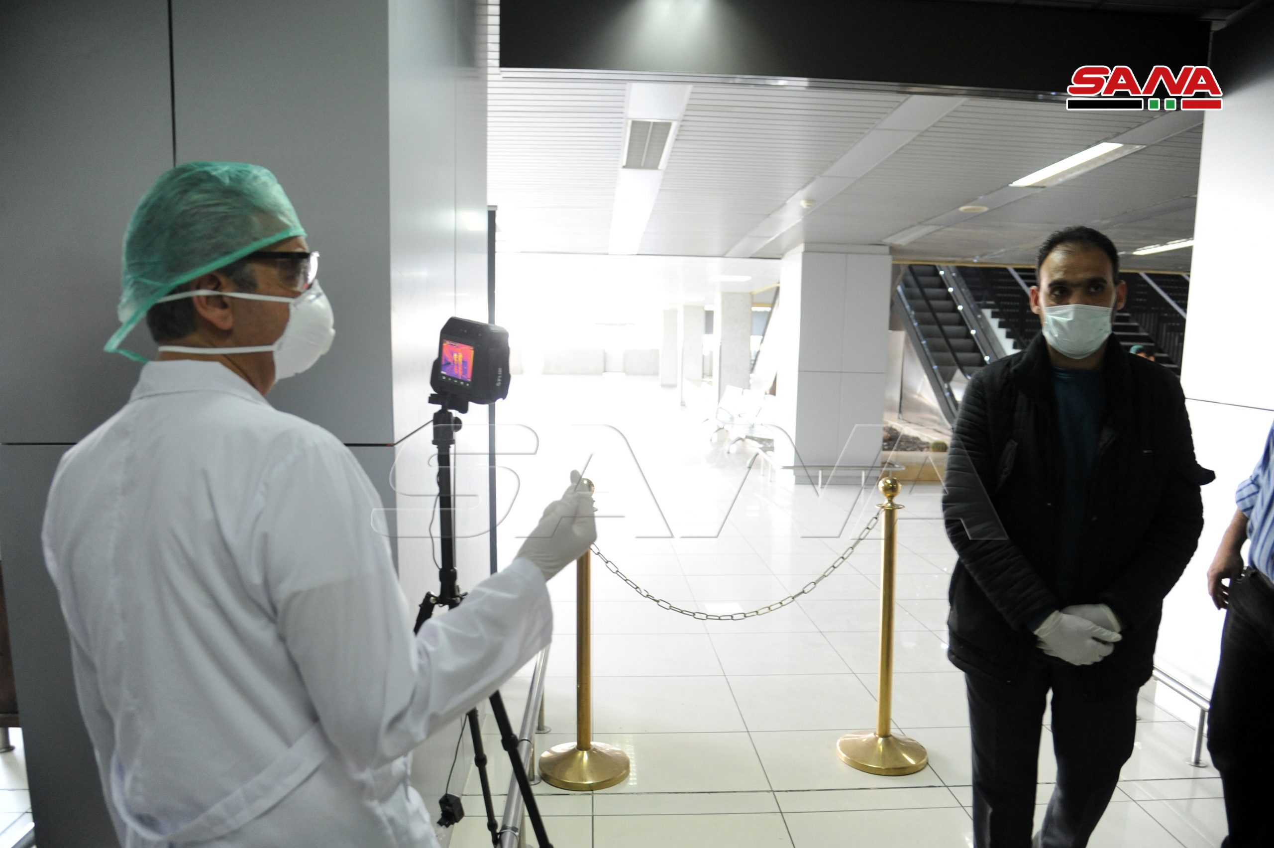 رئيسة المركز الصحي بمطار دمشق الدولي الدكتورة خزامى زريق بينت أن الكادر الصحي بالمركز منذ بداية الإعلان عن الاجراءات الاحترازية للتصدي لفيروس كورونا يقوم بالمسح الحراري للمسافرين القادمين إلى سورية من مختلف البلدان وتم توسيع الإجراءات لتشمل المغادرين أيضاً.