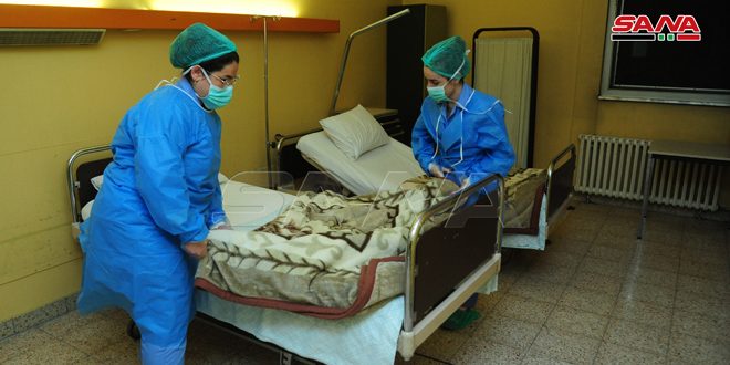 جهز مشفى الأسد الجامعي جناحاً خاصاً لعزل المشتبه بإصابتهم بفيروس كورونا المستجد ويضم عشر غرف وثمانية أسرة عناية معزولة.