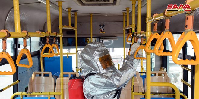 وفي اللاذقية تقوم الشركة العامة للنقل الداخلي بتعقيم وسائط النقل العامة صباح كل يوم قبل خروجها من المراب بمواد التعقيم الموصى بها وذلك ضمن إجراءات التصدي لفيروس كورونا.