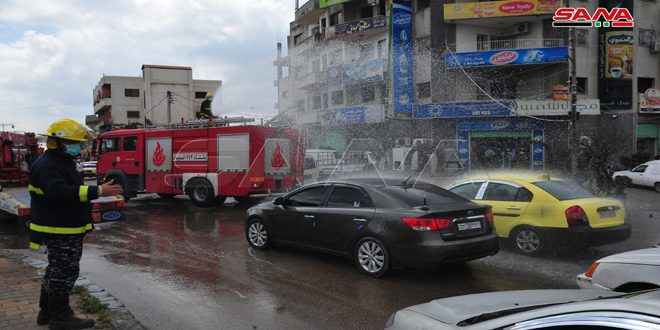 في إطار الإجراءات الاحترازية للتصدي لانتشار فيروس كورونا أنجز مجلس مدينة السويداء بالتعاون مع فوج الإطفاء أعمال تنظيف وتعقيم عدد من الشوارع والطرقات شملت الكراج الجنوبي والكورنيش الغربي ودوار المشنقة وسوق الخضار المركزي وطريق قنوات وبعض المؤسسات الحكومية.