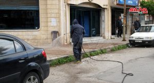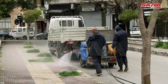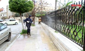 وفي طرطوس نفذت دائرة النفايات الصلبة حملة تعقيم واسعة على الكورنيش البحري والوسط التجاري وبعض أحياء المدينة بالتوازي مع استمرار حملة تعقيم باصات النقل الداخلي.