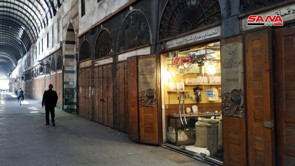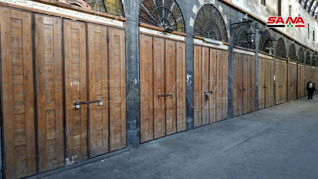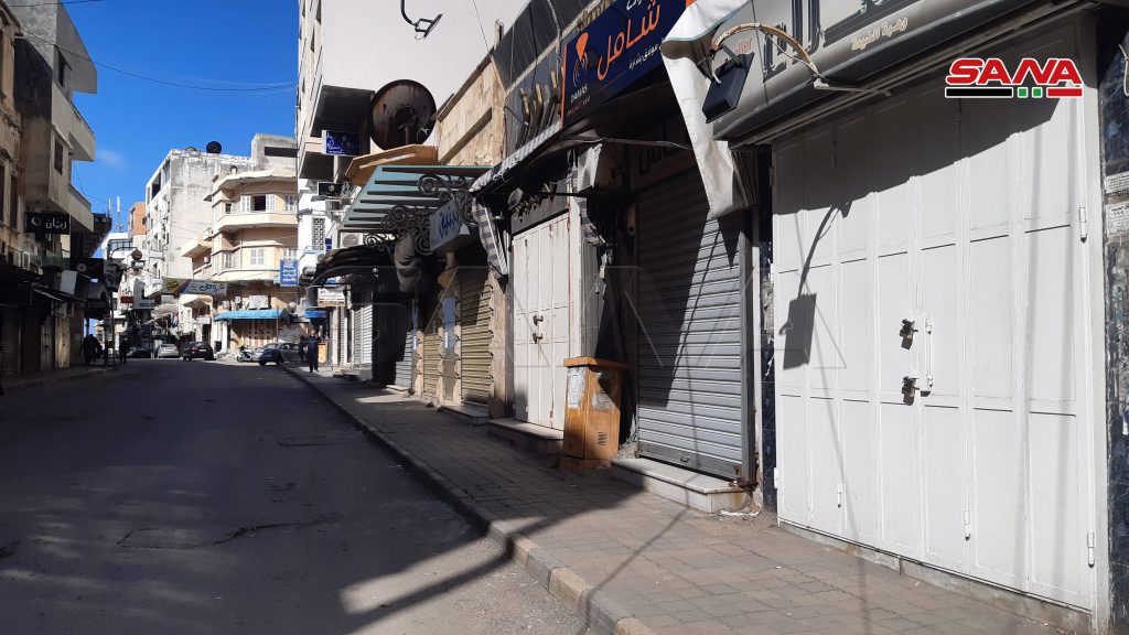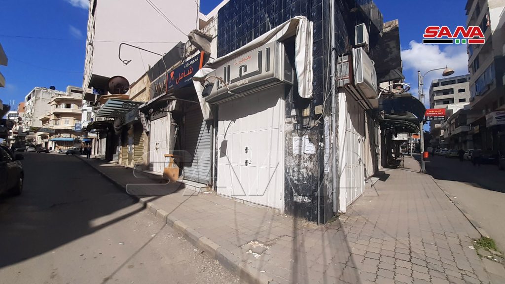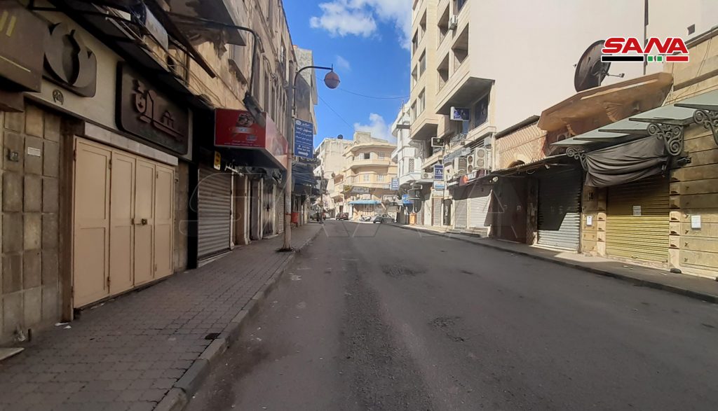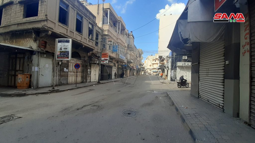 تطبيقاً للإجراءات الحكومية الاحترازية للتصدي لفيروس كورونا المستجد، بدت معظم شوارع المدن اليوم في عدد من المحافظات شبه خالية من المارة بعد التزام نسبة كبيرة من الناس بالتعليمات الحكومية وبقائها في منازلها مع اقفال الأسواق والمحال التجارية باستثناء مراكز بيع المواد الغذائية والتموينية والصيدليات والمراكز الصحية، مايعكس الحرص والوعي الكبيرين اللذين يتحلى بهما السوريون.