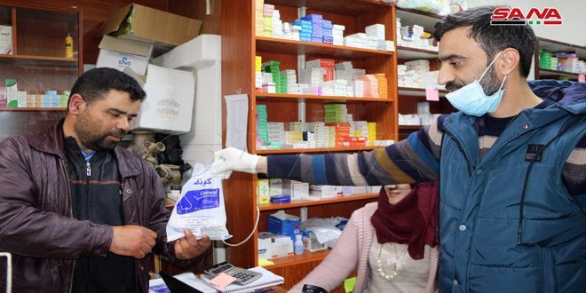 وفي درعا أطلق عدد من الصيادلة مبادرة لتوزيع وسائل وقاية شخصية من شأنها أن تعزز سبل التصدي لفيروس كورونا المستجد.