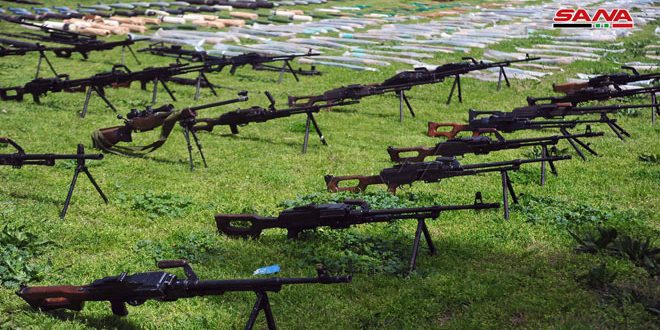 خلال متابعتها لعمليات تمشيط المناطق المحررة عثرت الجهات المختصة على كميات كبيرة من الأسلحة والذخائر المتنوعة من مخلفات الإرهابيين والمواد المخدرة المهربة في ريف دمشق والمنطقة الجنوبية.