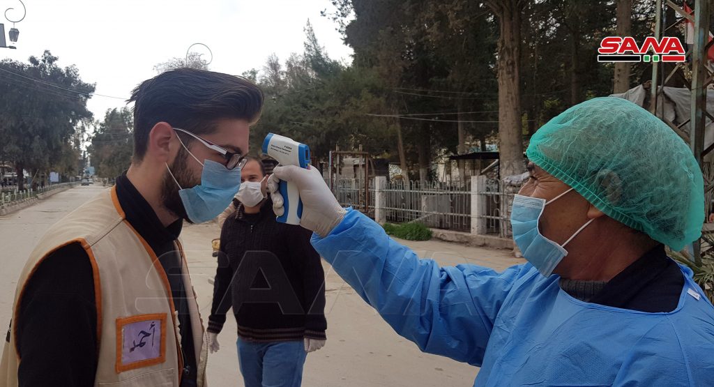 وبين عضو خلية الطوارىء المهندس مبارك سلام أنه تم اعتماد مركز التدريب والتأهيل التربوي ومدرسة الشهيد جادو أبو محمود في مدينة السويداء كمركزي حجر صحي احتياطيين ووضعهما تحت تصرف مديرية الصحة مع إحداث نقطة فحص طبي في مدخل المحافظة بالريف الشمالي عند بلدة الصورة الكبيرة مزودة بأجهزة حرارية الكترونية للكشف الأولي على القادمين للمحافظة إلى جانب قيام الجهات العامة بوضع آلياتها لمؤازرة مديرية الصحة.