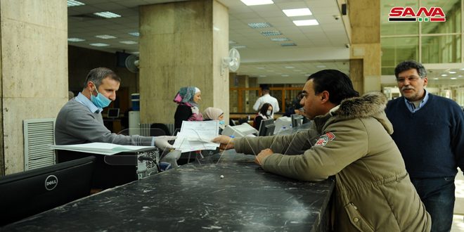 كاميرا سانا جالت في أقسام المركزي المعنية بتقديم الخدمات للجهات العامة والمواطنين ولا سيما الخزينة المركزية والحسابات الجارية وإدارة المخاطر والتقانة والتقت عضو لجنة إدارة المركزي والمديرة المشرفة سمر برهوم التي أوضحت أن المصرف مستمر بتقديم خدمات أساسية تتمثل بالشيكات والحوالات والدفعات النقدية ودفع البدلات واستلام الودائع وشراء القطع الأجنبي وتسديد السلف المستحقة والتسويات الجمركية ونظام التسويات المصرفية (إس واي جي إس).
