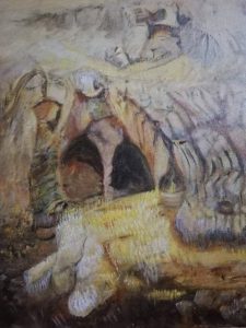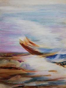 ولأنها تؤمن بأهمية محاكاة العمل الفني للواقع أشارت رجوب الى انها استمدت فكرة لوحتها الاخيرة بعنوان “بقايا قارب” من الوضع العالمي جراء انتشار فيروس كورونا صورت فيه موقفها وانطباعها بضرورة اتفاق الامم والشعوب على مواجهة هذا الوباء.