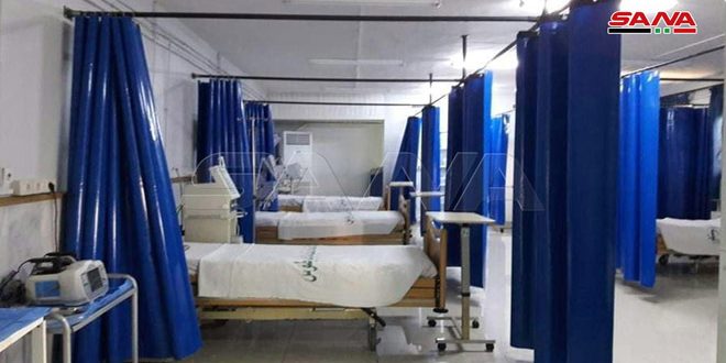 وبين مدير عام الهيئة الدكتور إسكندر عمار في تصريح لمراسلة سانا أن القسم يتسع لـ 45 مريضاً وهو ملحق بقسم للعناية المشددة يتسع لـ 16 مريضاً، مؤكداً أن الجناح والعناية قابلان للتوسع في حال الحاجة.