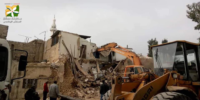 وأشار العكة إلى أن سبب الانهيار يعود إلى تسرب مياه الصرف الصحي من حمام المنزل ما أدى إلى انهيار أرضية الغرفة وتعرض الرضيع ذو الثمانية أشهر لإصابات نقل على إثرها إلى المشفى مبيناً أن ورشات محافظة دمشق باشرت بترحيل الردم وتدعيم الغرف المتبقية.