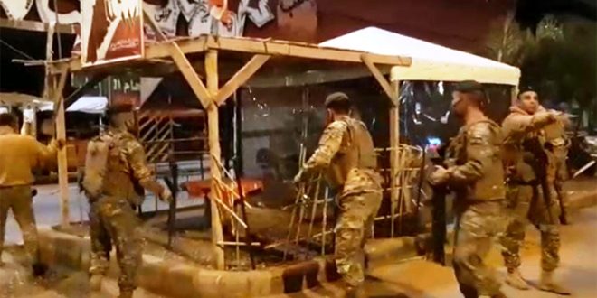 أزال الجيش اللبناني الليلة الماضية الخيم التي نصبها معتصمون في ساحة النور وسط مدينة طرابلس شمال لبنان منذ الـ 17 من تشرين الأول الماضي وأعاد فتح الساحة أمام حركة السير.