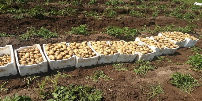ولفت قضماني في تصريح لنشرة سانا الاقتصادية إلى أن المساحة الإجمالية المزروعة بالبطاطا للعروة الربيعية خلال الموسم الزراعي الحالي تجاوزت 14 ألف هكتار من أصل المخطط البالغ أكثر من 19 ألف هكتار وبنسبة تنفيذ 73 بالمئة توزعت على حلب بـ 3800 هكتار فحماة بنحو 3000 هكتار ثم طرطوس بأكثر من 2600 هكتار فدرعا بـ 1450 هكتاراً وحمص 1325 هكتاراً ثم منطقة الغاب بـ 1157 هكتاراً.