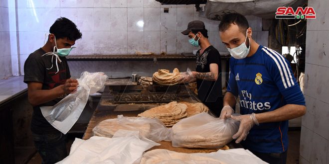 المسؤولية الواقعة على عاتق عمال المخابز والأفران تطلبت منهم تغيير أوقات دوامهم لتصبح المدة أطول حيث تبدأ من الساعة الثانية عشرة ليلاً حتى الرابعة عصراً لضمان وصول الخبز إلى جميع العائلات عن طريق المعتمدين وفق إجراءات الجهات المعنية المتخذة مؤخراً للتصدي للفيروس لمنع الازدحام والتجمعات أمام الأفران وهو ما قابله العامل محمد علي الحسين بكل مسؤولية ومحبة حسب تصريحه لمندوب سانا.