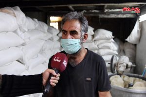 أمام آلة العجن وقف العامل يوسف حمد غير مكترث بالجهد المضاعف الذي فرضته عليه الظروف الراهنة جراء الإجراءات الاحترازية للتصدي لكورونا هو وزملاؤه ملحقا ابتسامته المتعبة بجملة..”نحن جنود في جميع الأزمات لأننا نعمل لتأمين المادة الأساسية لعيش السوريين ومن واجبنا الاستنفار في أي وقت لأجلهم ولأجل عوائلنا ووطننا”.