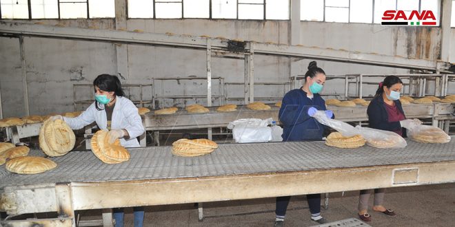 وخلال متابعة سانا لواقع العمل بالمخابز في الظروف الراهنة قال محمود شبيب مدير مخبز بسنادا الآلي: “إن جميع العمال يرتدون القفازات والكمامات وتجري عمليات التعقيم لهم قبل دخولهم وخروجهم من المخبز كما هو الحال لجميع أنحاء المخبز”.