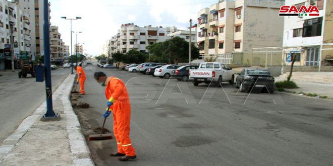يبذل عمال النظافة في المحافظات جهوداً مضاعفة للحفاظ على النظافة وتحقيق السلامة العامة للمواطنين ضمن الإجراءات الاحترازية المتخذة للتصدي لفيروس كورونا عبر تنفيذ برنامج عمل مكثف للمديريات الخدمية لتعقيم وتنظيف الأحياء السكنية.