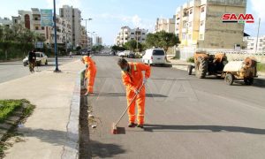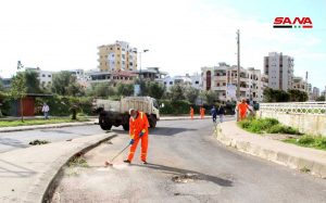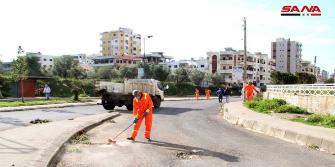 القاضي محمد زين رئيس مجلس المدينة نوه في تصريح لسانا بدور عمال النظافة والجهود الكبيرة والمضاعفة التي يقومون بها في إطار التصدي لفيروس كورونا معتبراً أنهم جنود حقيقيون لافتاً إلى أن المجلس وتطبيقاً للإجراءات الاحترازية المتخذة من قبل الحكومة السورية في التصدي لفيروس كورونا اتخذ خطوات فعالة لتحسين مستوى النظافة عبر مديريات خدمات النظافة والصيانة ودائرة الحدائق لجمع المخلفات وأكياس القمامة ضمن حاويات وترحيلها إلى المنطقة الوسيطة ومن ثم إلى مكب وادي الهدة لمعالجتها بطريقة فنية بعيدا عن المدينة حفاظاً على السلامة العامة.