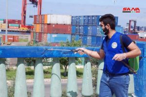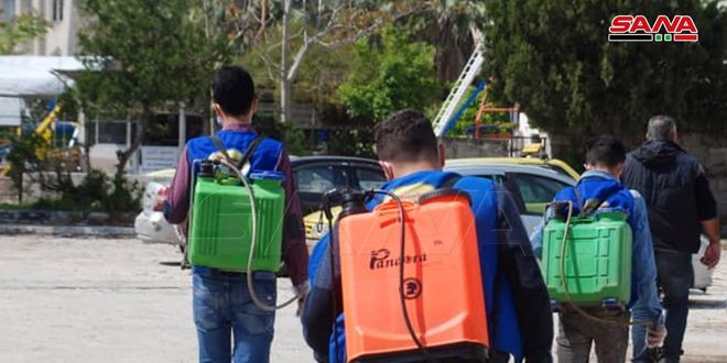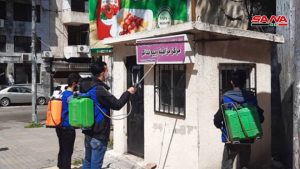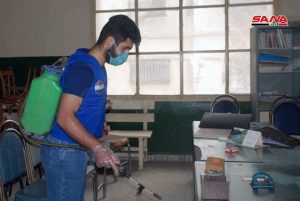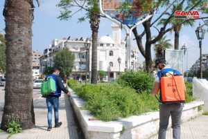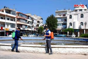 وفي اللاذقية نفذ فريق نادي الشباب التطوعي في رابطة الشهيد عماد الدين ديب الشبيبية العديد من حملات النظافة والتعقيم لمبان ومراكز ومؤسسات حكومية إضافة إلى توزيع البروشورات التوعوية حول الفيروس.