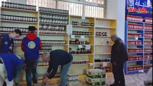 كورونا وسبل الوقاية منه وتقديم العون للعاملين في عدد من مراكز السورية للتجارة كتنظيم الدور ونقل الأغراض والتوزيع.