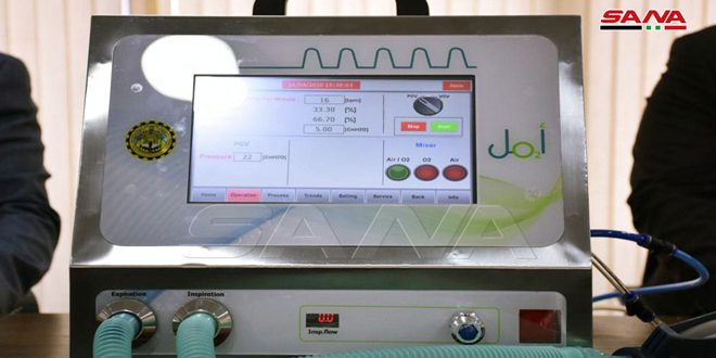 أطلقت غرفة صناعة حلب اليوم أول جهاز تنفس اصطناعي محلي الصنع باسم “أمل” تم تنفيذه وتصميمه بخبرات وطنية بعد إجراء الاختبارات الطبية اللازمة وسيتم تقديمه لوزارة الصحة لاعتماده في المشافي ومراكز العزل الطبي المخصصة للتصدي لفيروس كورونا.