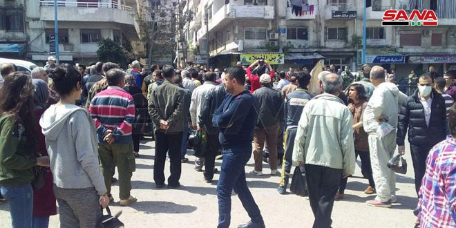 تجمع عدد من أصحاب البسطات وبائعي الخضار والفواكه والمواد الغذائية في سوق الخضار الشعبي بمدخل السوق وسط مدينة اللاذقية رفضاً لقرار مجلس المدينة بنقل السوق إلى مكان آخر.