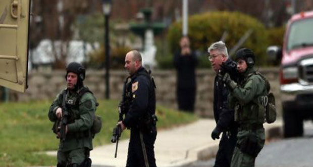 وذكرت وكالة الصحافة الفرنسية أن الشرطة المحلية قالت للتلفزيون الأمريكي أن “المشتبه به متحصن داخل منزل في سودرتون احد المواقع الذي عثر فيه على جثث القتلى اضافة الى موقع لانسديل ولور سالفورد تاونشيب حيث تمركزت قوات التدخل السريع امامه في حين تحدثت الانباء عن اطلاق نار في ضاحية رابعة من ضواحي المدينة” .