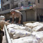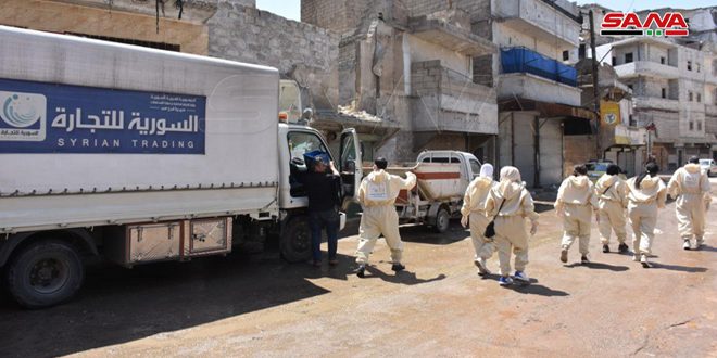 سير فرع المؤسسة السورية للتجارة في حلب اليوم 12 سيارة جوالة إلى حي الفردوس لبيع المواد التموينية بموجب البطاقة الإلكترونية ضمن الإجراءات الاحترازية للتصدي لفيروس كورونا.