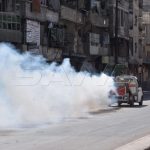 وأوضح عضو المكتب التنفيذي بمجلس المحافظة كميت عاصي الشيخ أن هذه الحملة تهدف إلى تعقيم شوارع الحي ضمن الإجراءات الاحترازية للتصدي لفيروس كورونا.