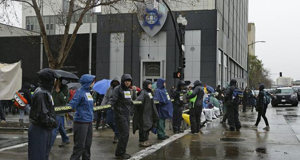 اعتقلت شرطة مدينة اوكلاند بولاية كاليفورنيا الأمريكية أمس ما لا يقل عن 13 شخصا خلال مظاهرات نظموها احتجاجا على قتل الشرطة الأمريكية للناس حيث أغلقوا بسلاسل بشرية المداخل الرئيسية لمركز الشرطة وأغلقوا الطرق وسط المدينة.