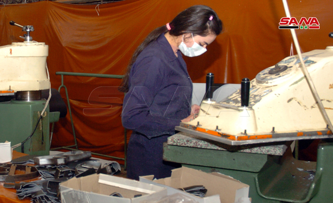 وتشير نعمان إلى أنه توازياً مع العمل تجري يومياً عملية تعقيم للمعمل والباصات التي تنقل العمال مبينة أن صالة الإنتاج تشغل مساحة كبيرة ومهواة بشكل جيد والمسافة الفاصلة بين العامل والآخر أكثر من مترين.
