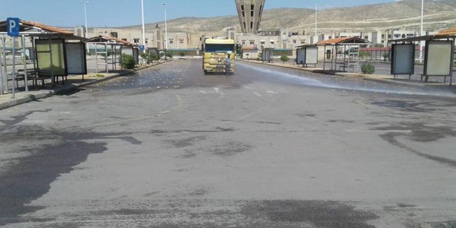 وأشار الدباس إلى أنه تم تنفيذ أعمال تنظيف وتعقيم جميع مراكز الانطلاق وتعقيم وسائل النقل وتم التشديد على جميع السائقين للالتزام بالشروط الصحية مؤكداً أن جميع وسائل النقل سيتم تعقيمها أيضا قبل دخولها إلى الكراجات حفاظاً على السلامة العامة.