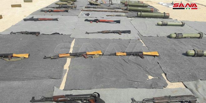 وعثرت الجهات المختصة بالتعاون مع وحدات الجيش خلال الأشهر الماضية على كميات كبيرة من الأسلحة والذخيرة بعضها إسرائيلية وأمريكية المنشأ وأدوية وسيارات شحن كبيرة وسيارات إسعاف غربية الصنع في ريفي دمشق والقنيطرة ما يعكس حجم الدعم اللوجستي والتسليحي للتنظيمات الإرهابية من الدول الداعمة والراعية لإرهابها.