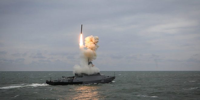أعلن أسطول البحر الأسود الروسي عن إرسال سفينة عسكرية تحمل صواريخ مجنحة من نوع (كاليبر) إلى البحر الأبيض المتوسط.