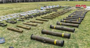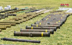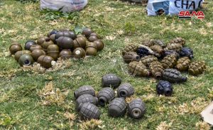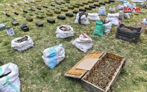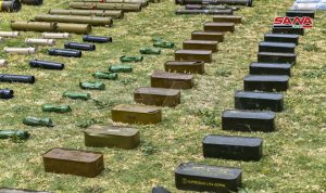 وبين مصدر في الجهات المختصة في تصريح لمراسل سانا أن الجهات المختصة وبالتعاون مع الأهالي عثرت على أسلحة وذخيرة من بينها “صواريخ تاو وصواريخ محمولة على الكتف وصواريخ مضادة للدروع ورشاشات خفيفة ومتوسطة من بينها نوع (دوشكا) وبنادق حربية آلية من منشأ غربي وقواذف (آر بي جي) مع عدد كبير من قذائفها وحشواتها وقذائف هاون وقواعد لإطلاقها وطائرة استطلاع مسيرة وكاميرات مراقبة متطورة وأجهزة اتصال إضافة إلى كميات كبيرة من الذخائر”.