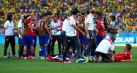 البرازيليون افتتحوا التسجيل مبكرا عبر المدافع ديفيد لويز في الدقيقة 18 بعد متابعته لكرة راسية لكن المهاجم اليكسس سانشيز سجل هدف التعادل في الدقيقة 33 بتسديدة قريبة عجز سيزار عن التصدي لها لينتهي الشوط الاول بالتعادل الايجابي بهدف لمثله.