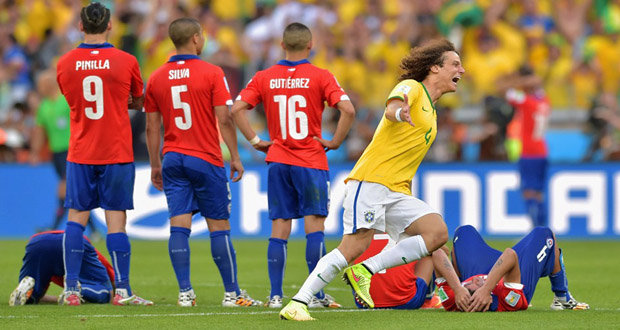تأهل منتخب البرازيل إلى الدور ربع النهائي في بطولة كأس العالم لكرة القدم التي تقام على أرضه وبين جمهوره بتخطيه منتخب تشيلي 3-2 بركلات الجزاء الترجيحية بعد تعادلهما في الوقتين الأصلي والإضافي للمباراة بهدف لكل منهما.
