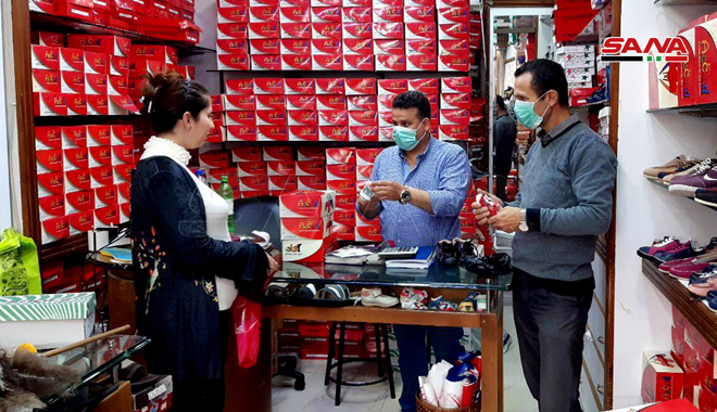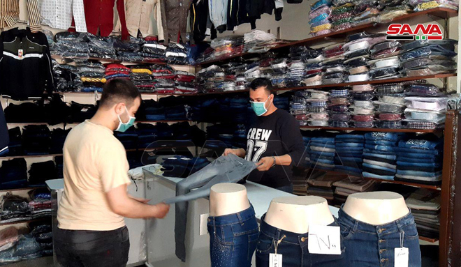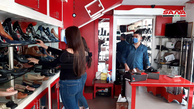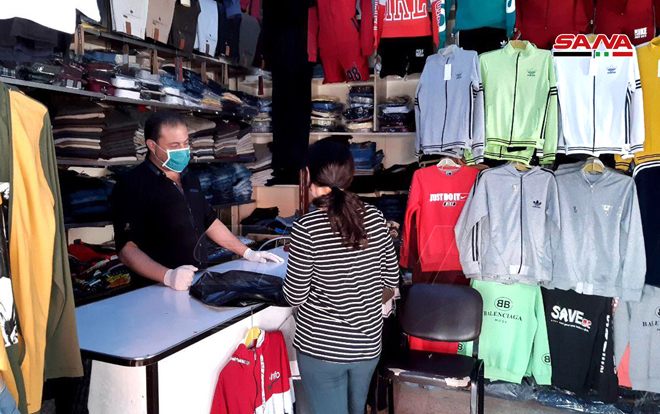جالت كاميرا سانا في أسواق طرطوس بعد السماح لمحال الألبسة والأحذية العمل يومي الاثنين والأربعاء من كل أسبوع من الساعة 8 صباحاً وحتى 3 بعد الظهر مع الالتزام بضوابط خاصة تؤمن السلامة العامة.