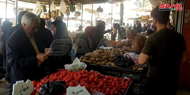 وخلال جولة على الأسواق رصدت كاميرا سانا الأسعار في أسواق مركز المدينة ولوحظ انخفاض في أسعار الخضار لتصل إلى النصف تقريباً حيث انخفض سعر كيلو البندورة من 1200 ليرة سورية إلى 700 ليرة سورية كما أن الانخفاض شمل باقي أصناف الخضار بينما لا تزال أسعار الفواكه مرتفعة بشكل كبير.