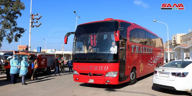 وفي درعا أشار عضو المكتب التنفيذي في المحافظة إلى أنه تم تسيير 45 رحلة بالبولمانات السياحية إلى محافظات دمشق وحلب واللاذقية وطرطوس وحمص وحماة وسط إجراءات صحية وقائية مشددة لافتاً إلى أنه تم وضع فرق طبية على مداخل المحافظة ومركز الانطلاق لفحص القادمين والمغادرين والتأكد من سلامتهم إضافة إلى عملية تعقيم الآليات الداخلة عبر أحواض تعقيم تم وضعها على مدخل مدينة درعا.