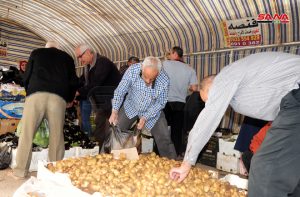 وأشار وليد فنصة إلى أن أسعار السوق منخفضة عن المحلات في خارجه حيث اشترى كيلو البندورة بـ 550 ليرة سورية والبصل بـ 250 ليرة والباذنجان بـ 300 ليرة.