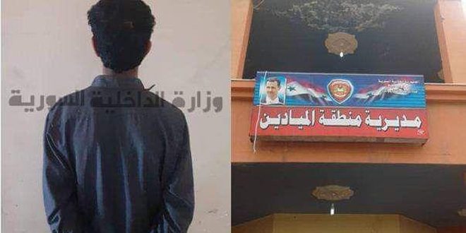 ألقت مديرية منطقة الميادين بدير الزور القبض على أحد الإرهابيين الذين قاموا بسرقة ثلاثين شاحنة محملة بمادة القمح من صوامع الحبوب في رأس العين وبيعها في منطقة الميادين وخارجها.