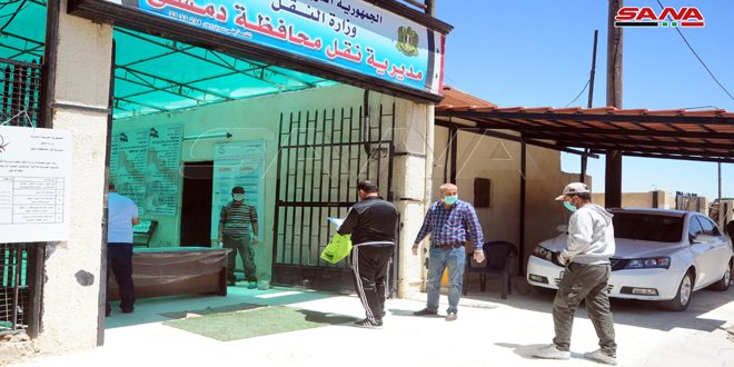 وأوضح مدير نقل دمشق المهندس ياسر محمد أنه ضمن الإجراءات الاحترازية التي تتخذها المديرية للحفاظ على سلامة الموظفين والمراجعين تم تجهيز مدخل المديرية ببساط معقم مع تعقيم مباشر للمراجعين وتطبيق نظام التباعد المعمول به وتوزيع الكمامات على الموظفين ولوحات على مدخل المديرية وصالاتها مدون عليها الخطوات الواجب اتباعها من قبل المراجعين.