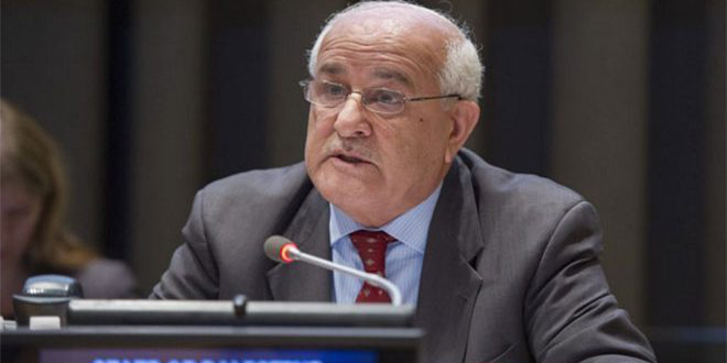 جدد مندوب فلسطين الدائم لدى الأمم المتحدة رياض منصور التأكيد على موقف فلسطين الرافض لمخطط كيان الاحتلال الإسرائيلي بضم أجزاء من الضفة الغربية مؤكداً أنه يأتي ضمن سلسلة متواصلة وممنهجة من عمليات التهويد والاستيطان.