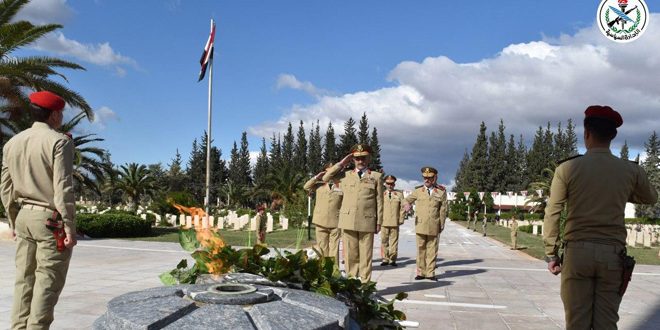وقام قادة المناطق العسكرية بزيارة مثاوي الشهداء ووضعوا أكاليل من الزهر باسم السيد الرئيس الفريق بشار الأسد القائد العام للجيش والقوات المسلحة على النصب التذكارية وقرؤوا الفاتحة على أرواح الشهداء الطاهرة وأدوا التحية الرسمية.