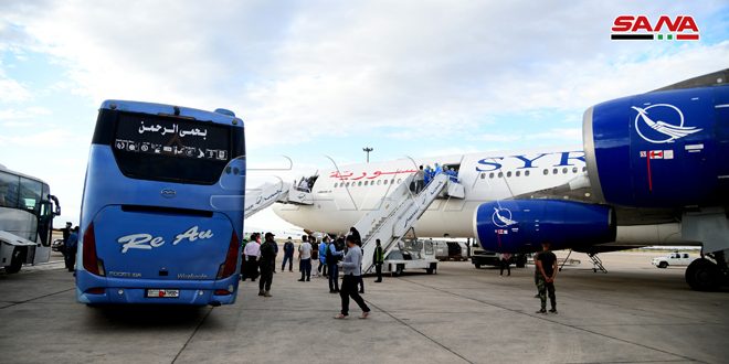 ووصلت إلى مطار دمشق الدولي الخميس الماضي طائرة تابعة لـ السورية للطيران تقل 232 راكباً من السوريين العالقين في الخارج قادمة من مطار القاهرة في جمهورية مصر العربية.