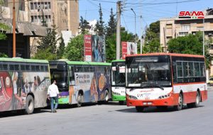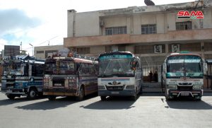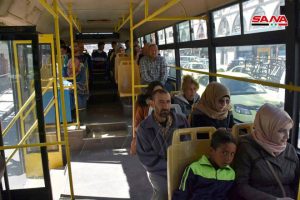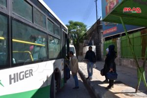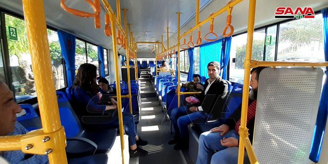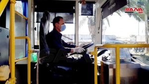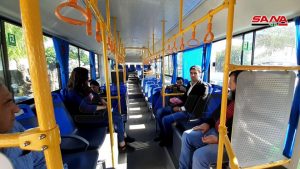 وذكر مدير شركة النقل الداخلي بحمص علي الحسين في تصريح لمراسلة سانا أنه تم تعقيم الباصات قبل انطلاقها للعمل وتأمين وسائل الوقاية الفردية للسائقين من الكمامات والقفازات والمعقمات إضافة إلى الطلب من السائقين بمنع الازدحام داخل الباص والاكتفاء بعدد الركاب وفق عدد المقاعد.