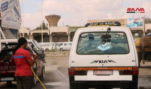 وفي اللاذقية أكد أحمد نجار رئيس نقابة عمال النقل البري والسكك الحديدية متابعة إجراءات النظافة وعمليات التعقيم للسرافيس والباصات منذ ساعات الصباح الأولى بعد تنظيف وتعقيم الكراجات مساء أمس وتوزيع النقاط الطبية على المداخل.