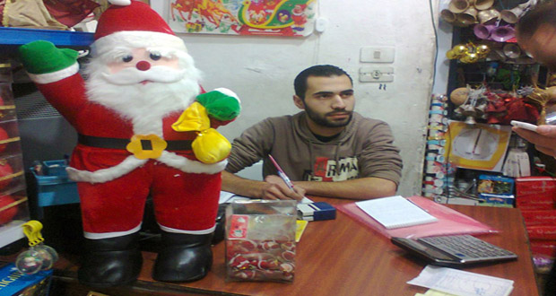 تعتبر مناسبة عيد الميلاد ورأس السنة فرصة للتجار الذين يقومون بعرض كل أنواع الزينة لتنشيط السوق.