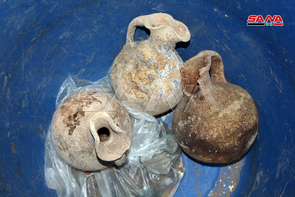 رئيس دائرة الآثار الدكتور محمد خير النصرالله ذكر في تصريح لمراسل سانا اليوم أن إحباط عملية التهريب تمت من الجهات المختصة مبيناً أن القطع المستردة شملت 213 إناء فخارياً مختلفة الأحجام و174 إناء زجاجياً متنوعاً تعود بمجملها إلى العصور البرونزية القديمة والرومانية والبيزنطية.